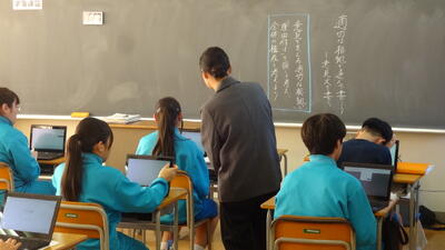 2年生国語の授業の様子です。今回は岩手日報社さん「+(プラス)日報」とのコラボ企画でした。