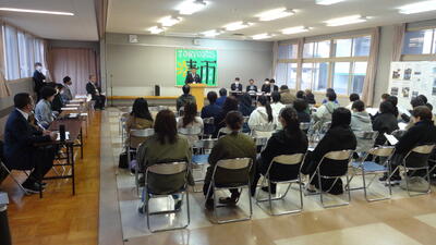 「まとめ集会」では、生徒会長のあいさつで始まり、各学年代表から2学期の生活のふり返り等が発表されました。