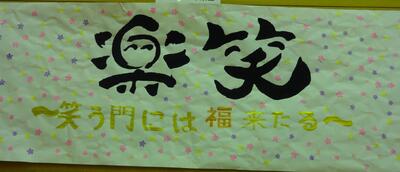 予餞会のスローガンは「楽笑 ~笑う門には福来たる~」。お世話になった3年生には、たくさん笑ってこの会を楽