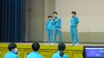 しんでほしいという願いがこめられています。さらに、3年生の高校入試合格や1,2年生の統合後の活躍を祈願する