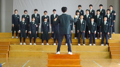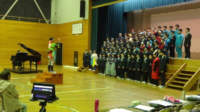 全校生徒81名、心を合わせ「校歌」と「イーハトーヴの風」をさくらホールいっぱいに歌声を響かせました♬