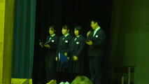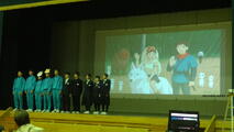 このスローガンは、本校2年生生徒の作品で、多数の応募の中から見事選ばれ、ステージ上で表彰されました。