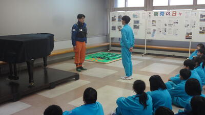 何も知らずに6時間目の授業に入った生徒たち。そこに突然、「火事だぁ~!家庭科室から火が出ている!」と男性教員の声が響き、校庭に避難するよう校内放送が入り、それぞれの経路から避難を開始しました。