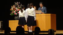 そこで生まれた考え方が「恩送り」。誰かに助けてもらった時、その人に返せなくても、別の誰かに親切にする。支えてもらった分、次の人を支える。それが「恩送り」。・・・(中略)・・・将来、誰かが困っていたら手を差し伸べること。友だちや後輩に、やさしい言葉をかけること。社会に出て、誠実に生きること。自分なりに一生懸命に生きること。それらすべてが、この学校やお世話になった方への「恩返し」であり、同時に、未来への「恩送り」なのです。この学校で受け取ったものを、どうかこれからの生活の中で、次へまた次へと送ってください。それが、これからもみんなの心の中で生き続ける一番の形、一番の「恩送り」だと思います。』とお話しされました。
