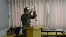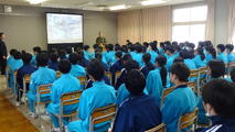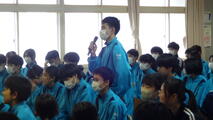 今年度、そして本校最後の「全校朝会」が昨日、多目的ホールで行われました。